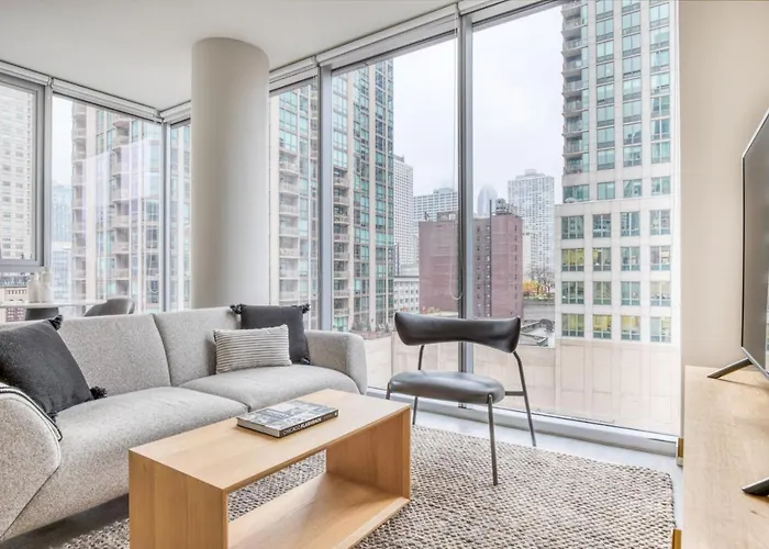 Eine Mikrowelle und Küchenutensilien sind ebenfalls vorhanden, ebenso wie komplette Küche. Die Gäste dieser Unterkunft können den Komfort von Ausstattung zur Kaffee- & Teezubereitung genießen. Verschiedene Speisemöglichkeiten, darunter The Kitchen at the Waldorf Astoria und Lou Malnati's Pizzeria, sind ungefähr 400 Meter entfernt. Die U-Bahn-Station Chicago ist ebenfalls neben diesem 63 m² großen Apartment. Fitness-Stunden erweitern das Erholungsangebot von sportlichen Aktivitäten.